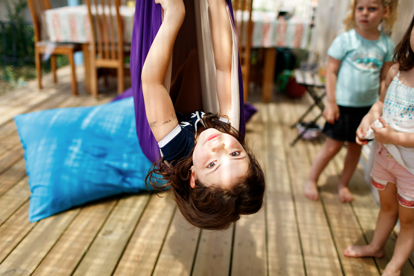 Die Kopfüber™ Schaukel wird zum Abenteuerraum, in dem Kinder in Fantasiewelten eintauchen: mal als Pirat auf hoher See, mal als Astronaut im Weltall. Bewegung, Spiel und Vorstellungskraft verschmelzen und fördern kreative Entwicklung.