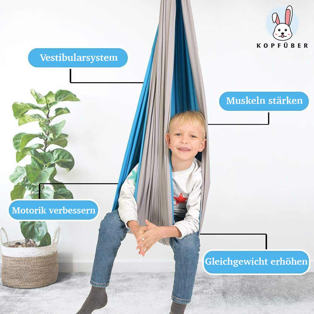 Die Kopfüber™ Therapieschaukel hilft, die perfekte Umgebung für Kinder jeden Alters zu schaffen, um Spaß zu haben und sich sicher zu fühlen und gleichzeitig zu lernen, wie man sich bewegt, tanzt, spielt,